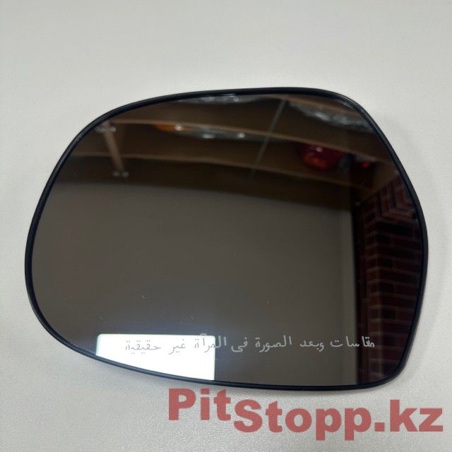 Зеркальный элемент в левое боковое зеркало заднего вида, со стороны водителя, на Toyota Land Cruiser Prado 120, Тойота Лэнд Крузер Прадо 120, кузов 2002-2009гг. На автомобиль арабской (ОАЭ) сборки. Без опции обогрева самого зеркального полотна, с надписью на арабском языке, по нижней части зеркального элемента.