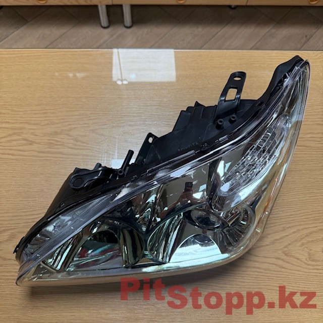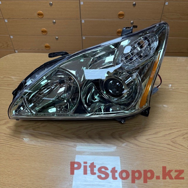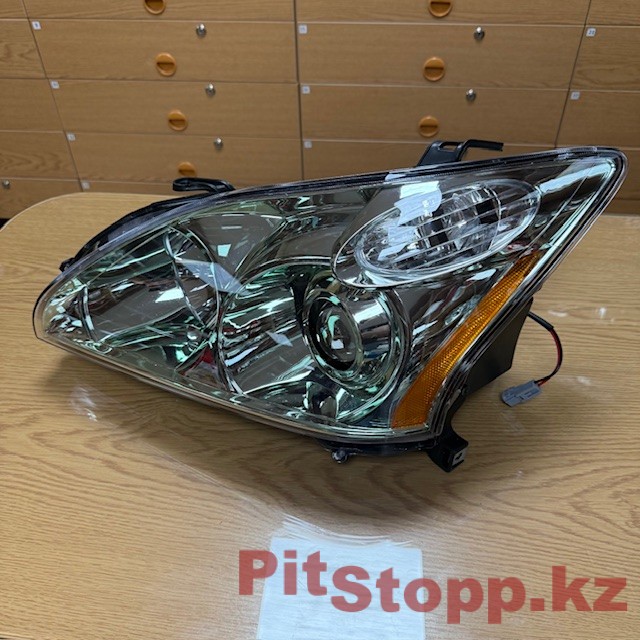 Передняя левая фара основного света, со стороны водителя, на Lexus RX 300, 330, 350; Лексус Эр Икс 300, 330, 350; кузов 2003-2008гг. На автомобиль: американской (США, USA), канадской, европейской (японской, Japan) и арабской (ОАЭ) сборки. Тип освещения: ксенон — яркий, холодный белый свет, премиального качества, с высокой яркостью, характерный для штатных систем ксенона. В фаре используется линза для ближнего света, что дает четкую светотеневую границу, (СТГ) с характерным «ступенчатым» рисунком. Световой пучок направлен так, чтобы не слепить встречных водителей и лучше освещать правую обочину. Аналог оригинала отличного качества, по всем характеристикам абсолютно идентичный оригиналу.